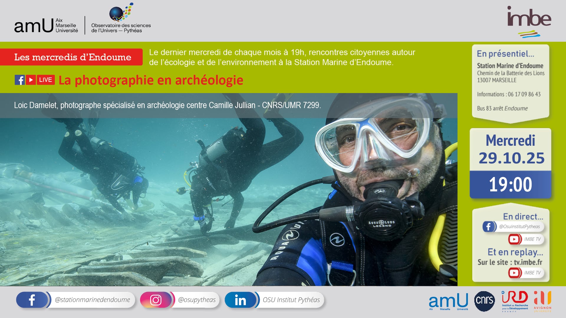 Dans le cadre des conférences grand public des Mercredis d’Endoume, Loïc Damelet, photographe spécialisé en archéologie (Centre Camille Jullian - CNRS-UMR 7299), nous propose une conférence intitulée “ La photographie en archéologie“ en présentiel à la Station Marine d’Endoume ou en direct. Résumé de la conférence : De sites archéologiques aux salles des musées, le […]